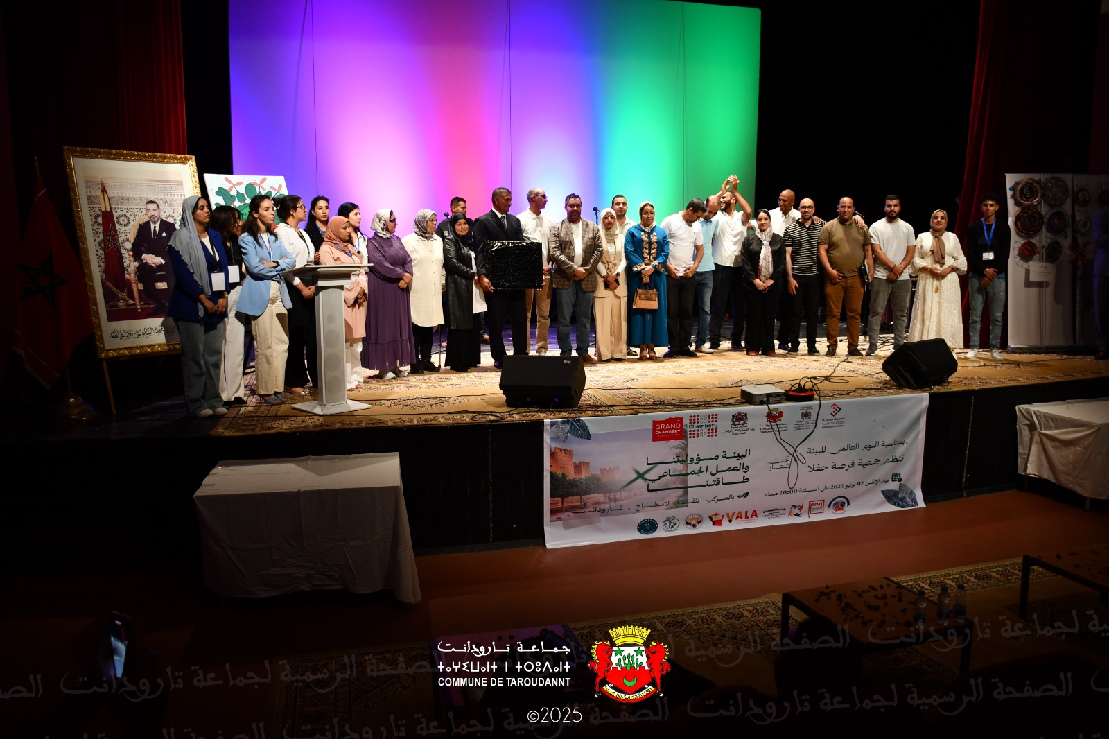 احتضن المركز الثقافي بمدينة تارودانت، مساء يوم الاثنين 2 يونيو 2025، حفلاً بيئياً متميزاً احتفاءً باليوم العالمي للبيئة، نظّمته جمعية فرصة للأعمال الاجتماعية بشراكة مع الجماعة الترابية لتارودانت، ومدينة شومبيري الفرنسية، وبتعاون مع كل من المديرية الإقليمية لوزارة التربية الوطنية والتعليم الأولي والرياضة، والمديرية الإقليمية لوزارة الشباب والثقافة والتواصل – قطاع الثقافة، تحت شعار: