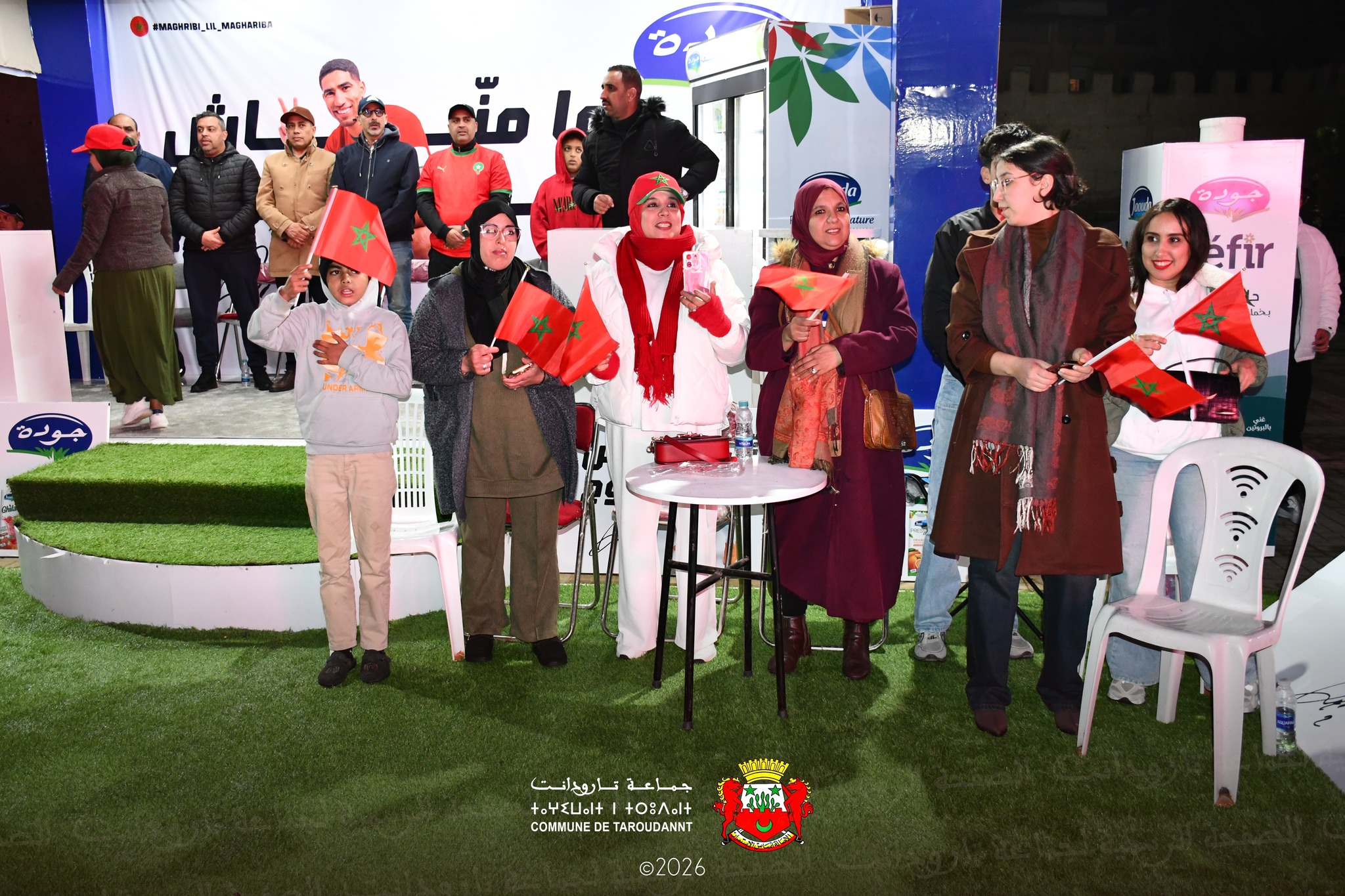 بالصور منطقة المشجعين بساحة 20 غشت بمدينة تارودانت من تنظيم تعاونية بلادنا "كوباك" بشراكة مع الجماعة الترابية تارودانت و بتنسيق مع السلطات الاقليمية خلال متابعة مباراة نصف بين المنتخب المغربي ضد المنتخب النيجيري