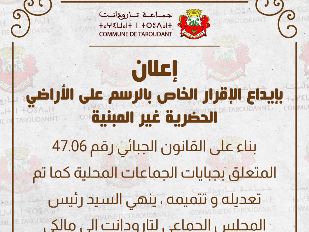 إعلان بإيداع الإقرار الخاص بالرسم على الأراضي الحضرية غير المبنية