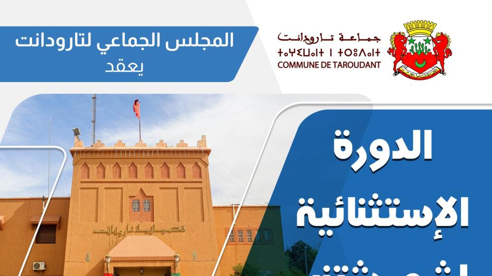 جدول أعمال الدورة الإستثنائية لشهر ستنبر 2025 الجلسة الفريدة، الخميس 11 شتنبر 2025 على الساعة 10 صباحا بقاعة الإجتماعات بجماعة تارودانت. ...
