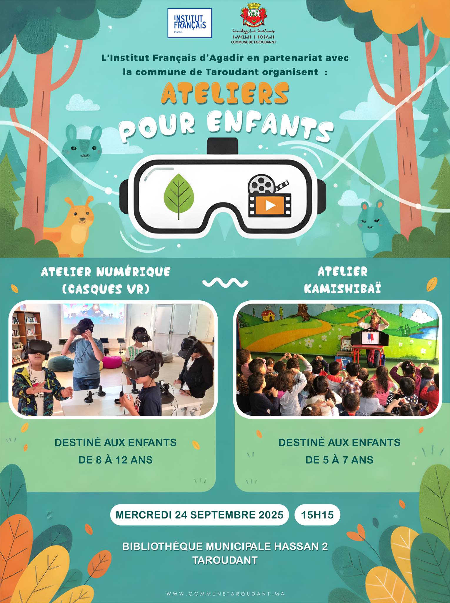 مرحبا بأطفالكم في الورشات المنظمة بالخزانة البلدية يوم الاربعاء 24 شتنبر 2025، كونوا في الموعد