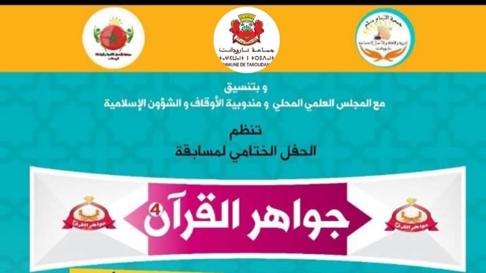 بشراكة مع جماعة تارودانت و بتنسيق مع المجلس العلمي المحلي و مندوبية الاوقاف و الشؤون الاسلامية ينظم الحفل الختامي لمسابقة جواهر القرآن في نسخته الرابعة بتاريخ الثلاثاء 10يونيو 2025 بالمركز الثقافي بتارودانت. ...