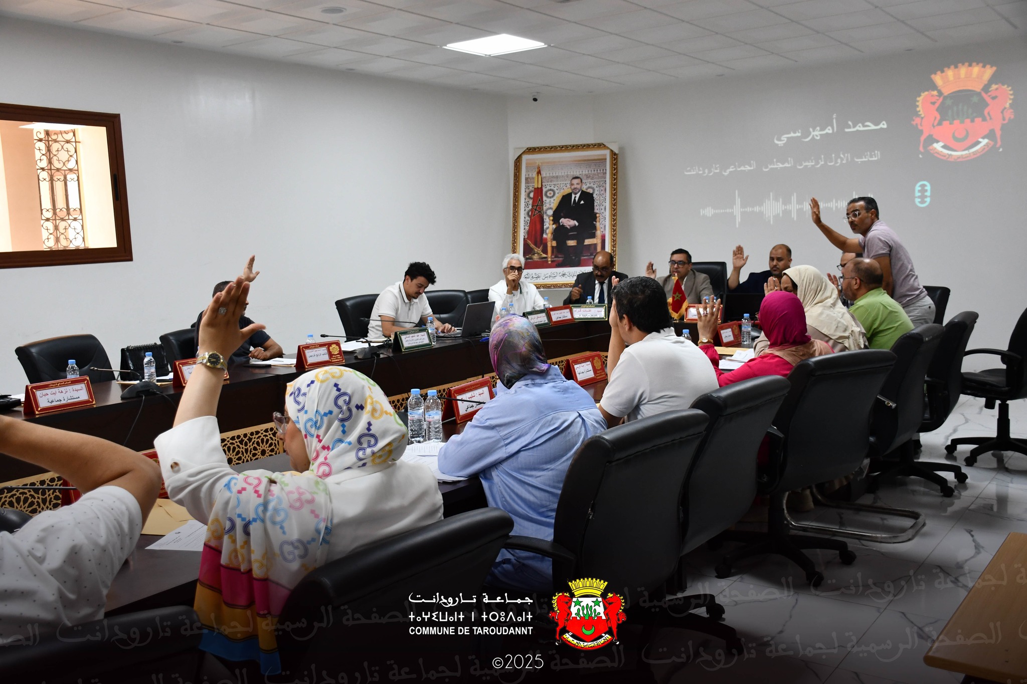 تطبيقا لمقتضيات الظهير الشريف 1.15.85 الصادر في 20 رمضان 1436 هــ (7 يوليوز 2015) بتنفيذ القانون التنظيمي رقم 113.14 المتعلق بالجماعات، ترأس السيد محمد امهرسي النائب الأول لرئيس المجلس الجماعي لتارودانت بحضور السيد عنات كرام باشا مدينة تارودانت و السيد عدنان مشواط المدير الإقليمي لوزارة الصحة والحماية الاجتماعية بتارودانت والسادة أعضاء المجلس والسادة اطر وموظفي الجماعة وممثلي المنابر إعلامية المحلية أشغال الدورة الاستثنائية لشهر يونيو 2025 في جلستها الفريدة يوم الجمعة 20 يونيو 2025 بقاعة الاجتماعات بجماعة تارودانت،